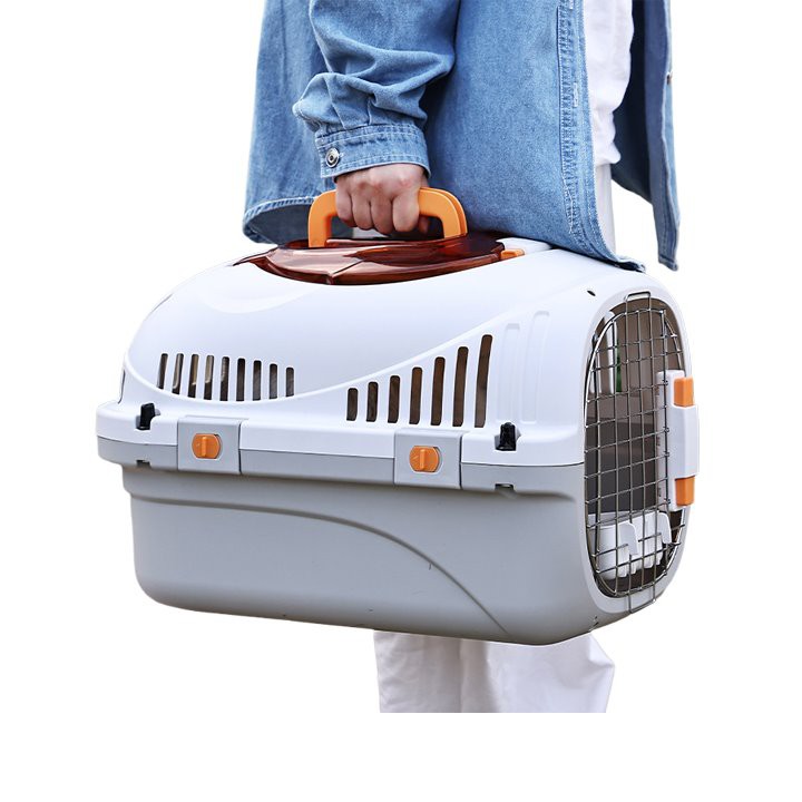 Lemmikkieläinten matkalaukku, jossa on kestävä muovikuori, vahvistetut metalliosat ja vahva oven salpa, pitävät lemmikkisi turvassa, ja siinä on sisäänrakennettu tasainen ilmavirtaus ja näkyvyys.